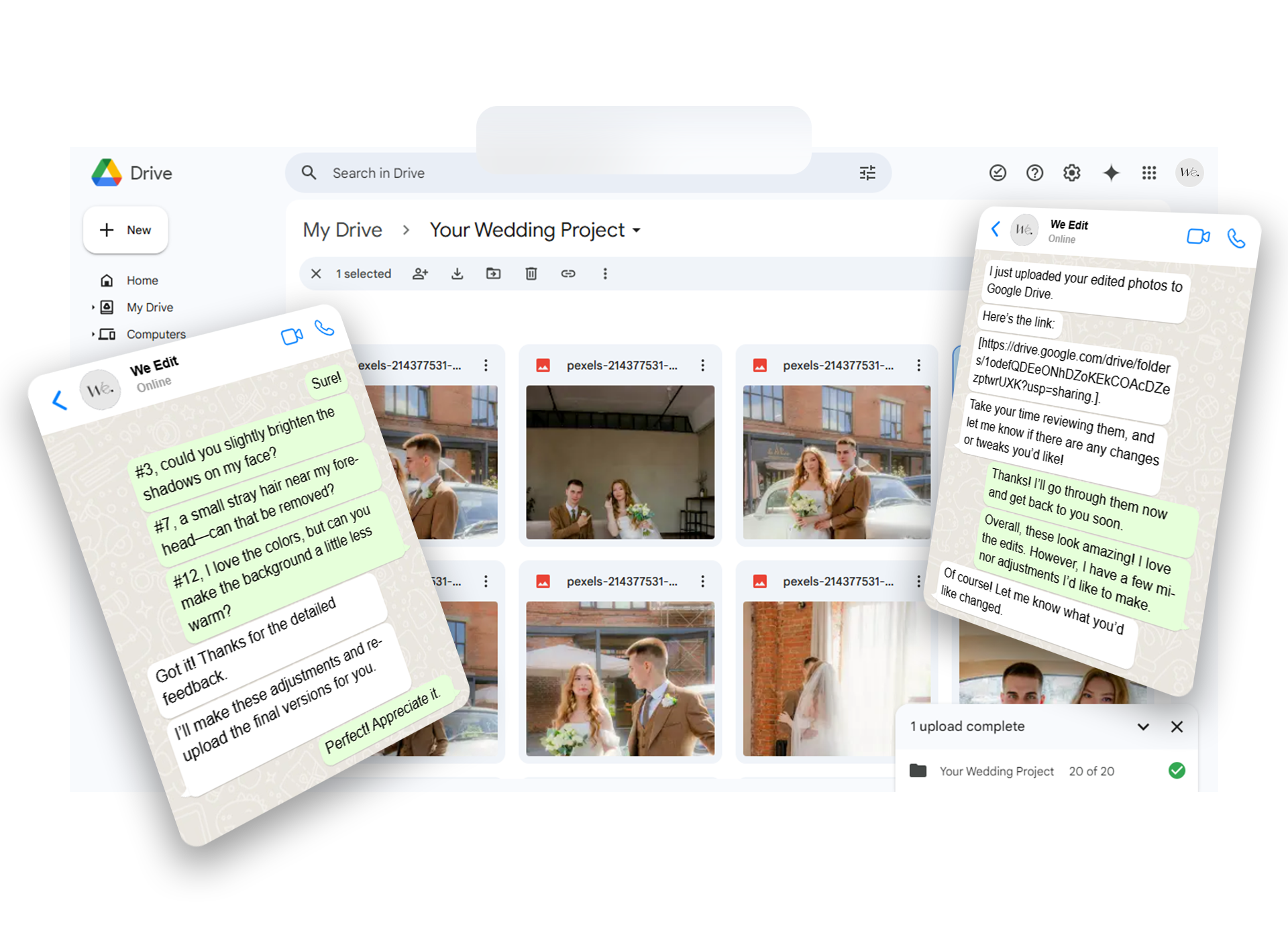 2. Files and Preferences: Raw images, file-sharing links, and editing preferences provided to complete your project.