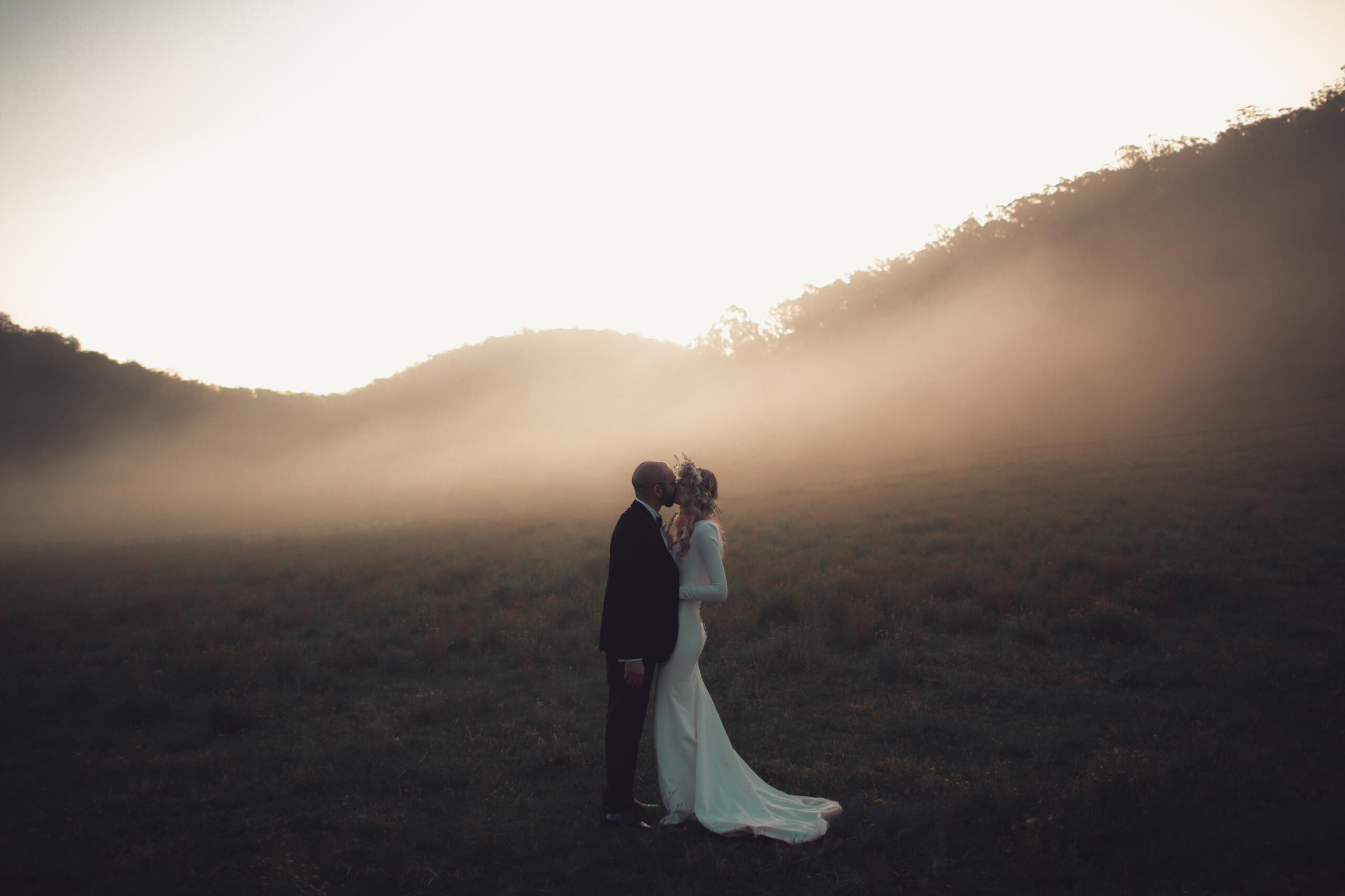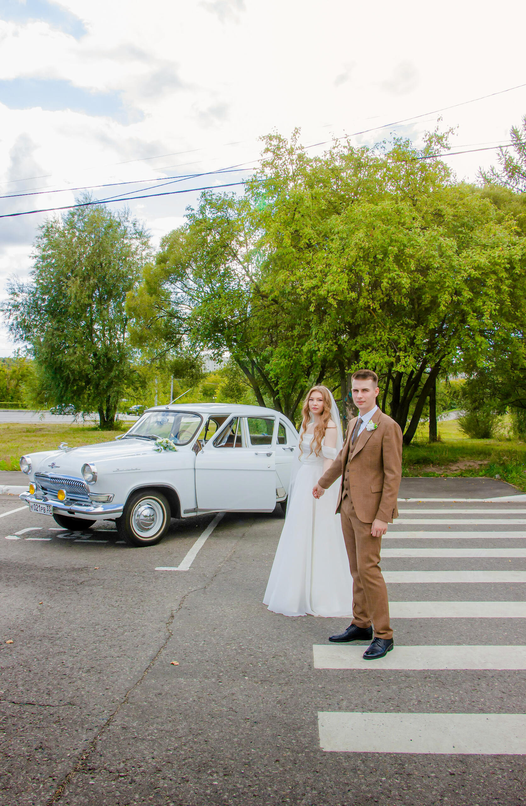 ㅤ• Adjusting white balance for a warm tone, enhancing natural greens, and accentuating the contrast between the couple's attire and the background.