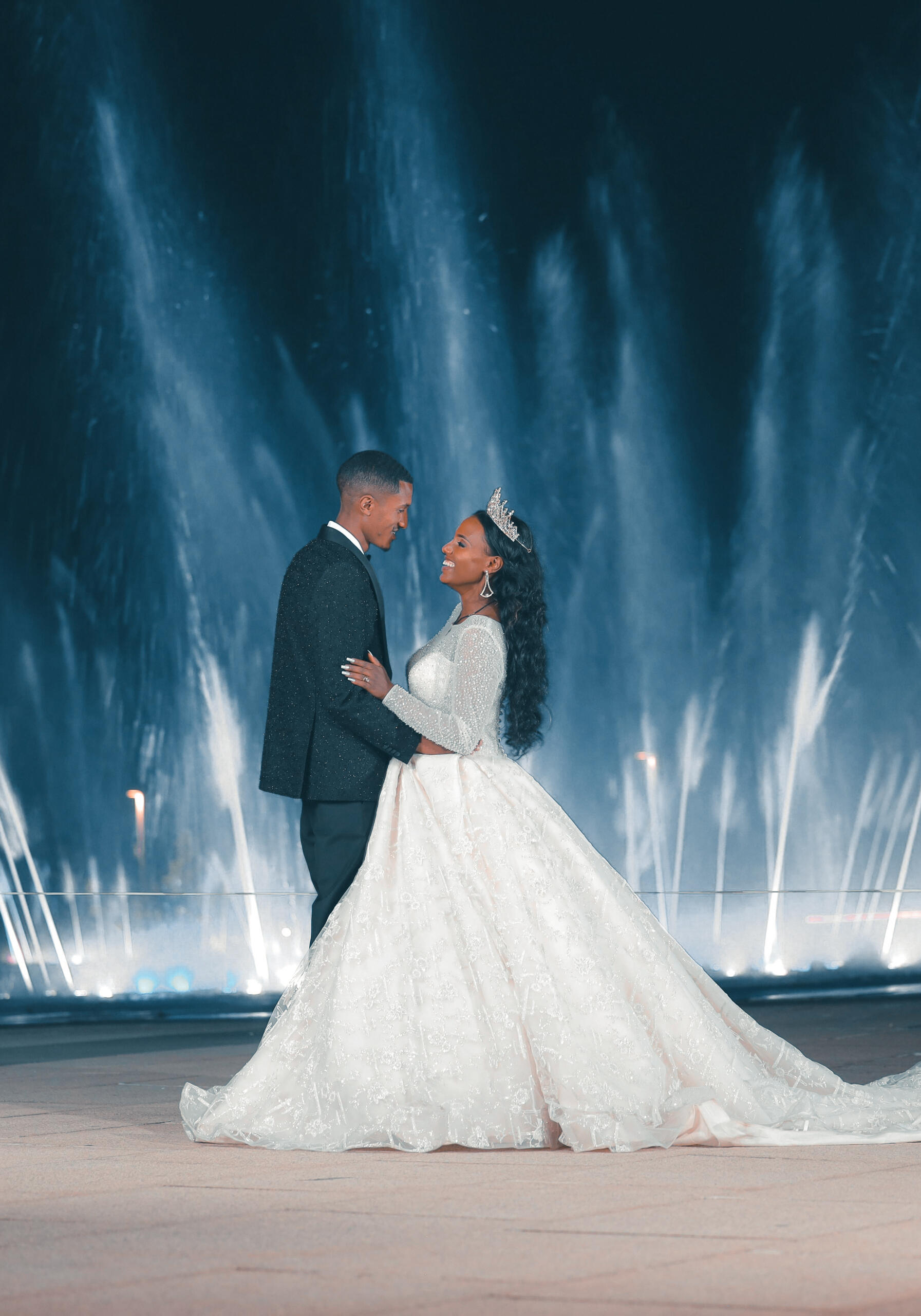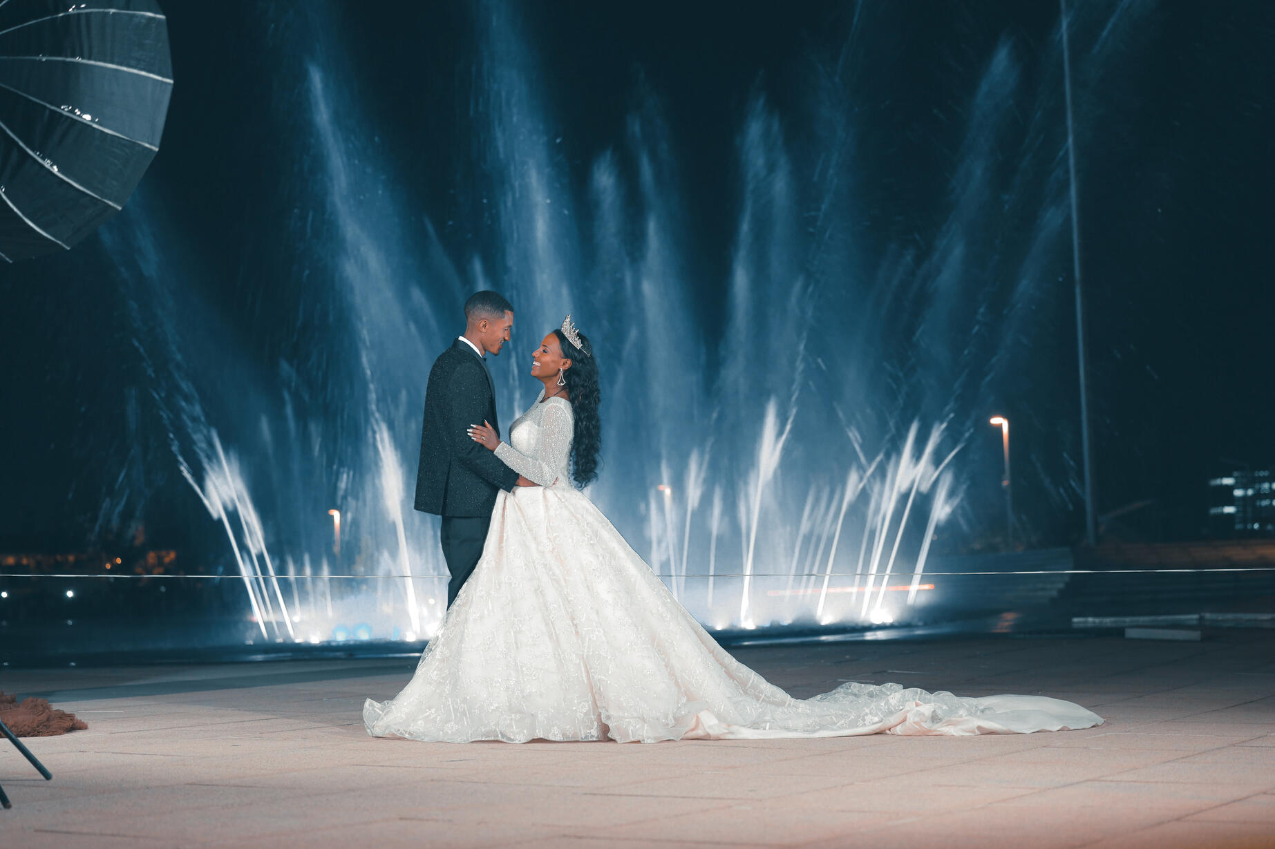The photographer’s goal was to deliver high-quality, cinematic-style images that emphasized the romantic atmosphere of the wedding.The photos had to maintain a clean, polished look with an elegant balance between natural elements (water fountain lights) and the couple's regal attire. Specific requirements included: